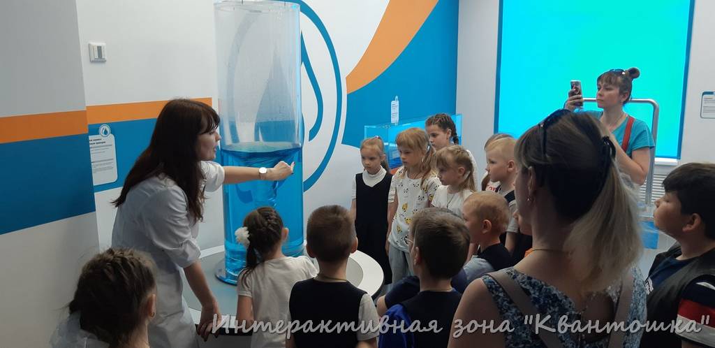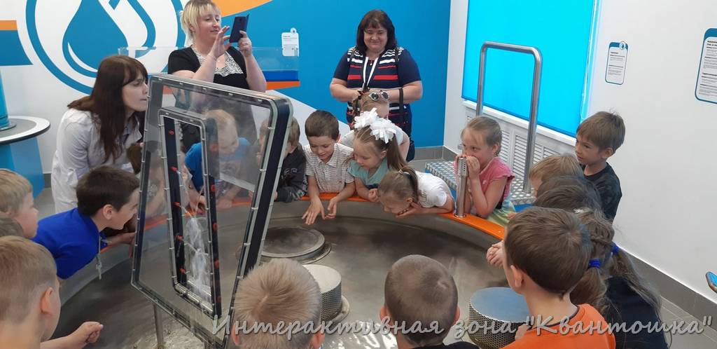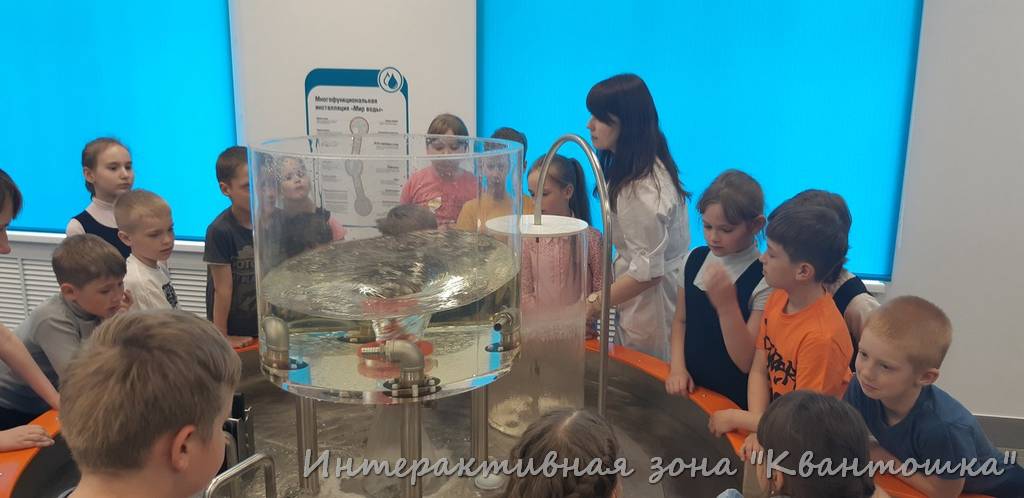 , на котором они, благодаря большой Многофункциональной инсталляции "Мир воды", узнали, как погружается подводная лодка, образуется водоворот, волна, что такое центробежные силы, винт АРХИМЕДА, дамбы, шлюзы, музыкальный ксилофон, познакомились со свойствами воды, узнали о ее значении в жизни человека