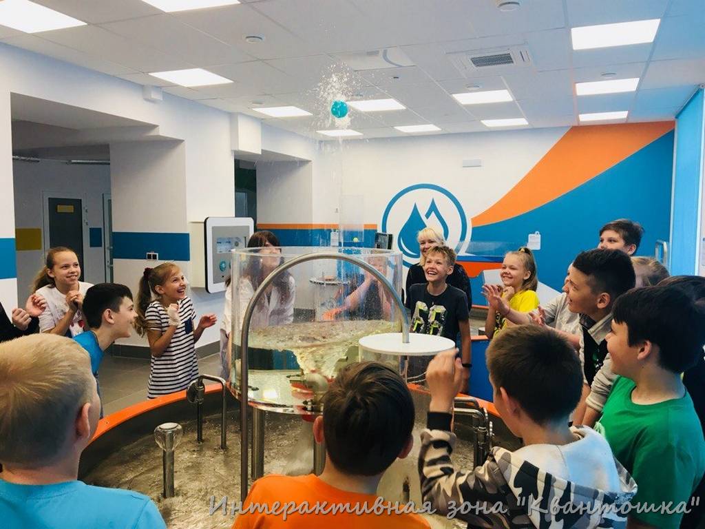 , на котором они, благодаря большой Многофункциональной инсталляции «Мир воды», познакомились со свойствами воды, узнали, что такое винт Архимеда, гидродомкрат, водоворот и многое другое.