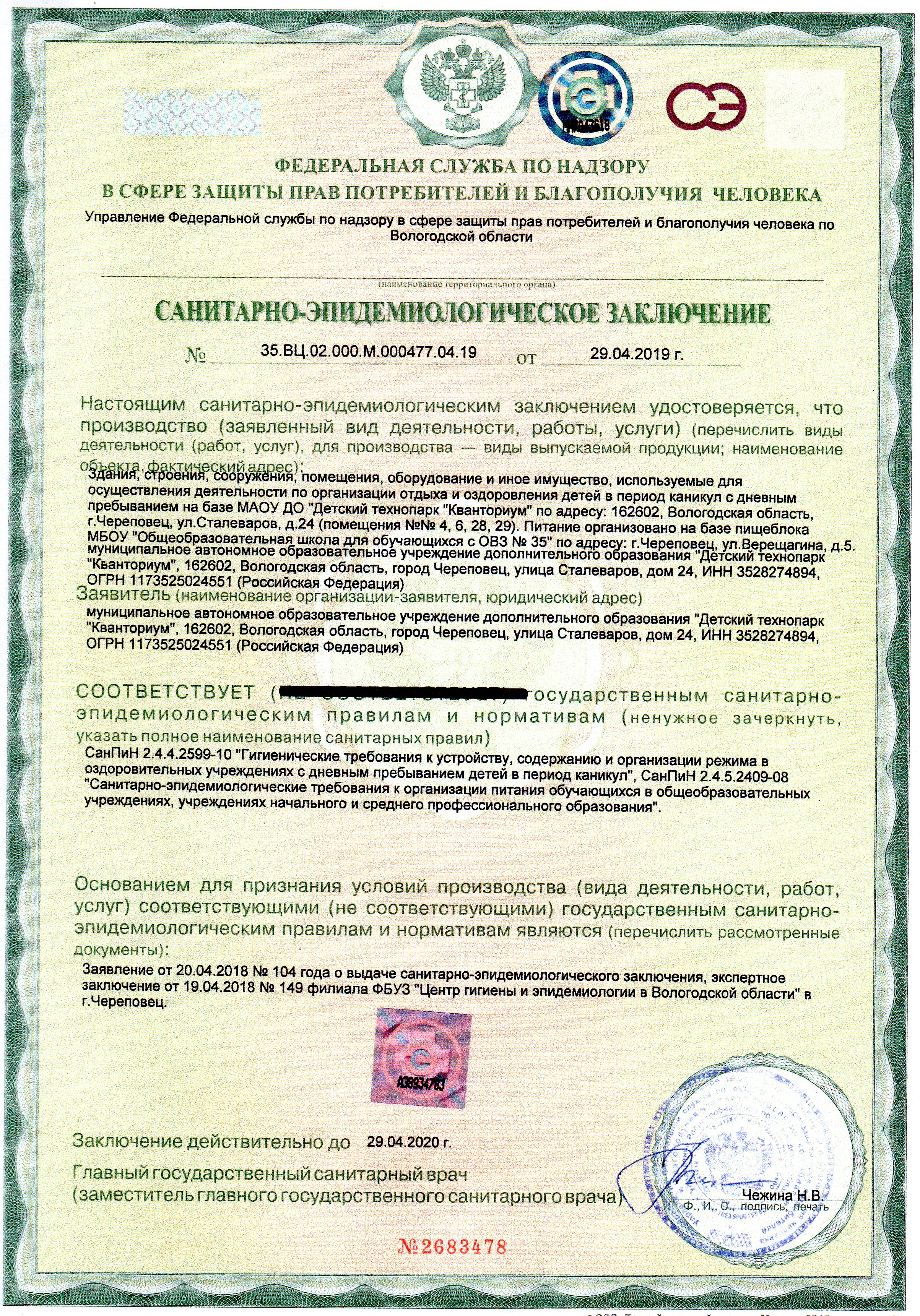 Санитарно-эпидемиологическое заключение